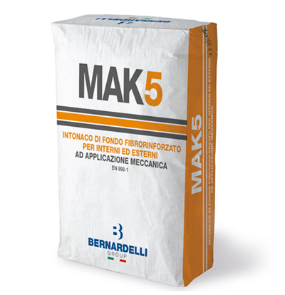 MAK5 è una malta premiscelata a secco utilizzata come intonaco di fondo per intonacare murature costituite da laterizi, mattoni, blocchi in calcestruzzo e muratura mista. MAK5 è composta da: calce idrata, cemento Portland, sabbie selezionate, fibre e additivi che ne migliorano la lavorabilità, l’adesione e la resistenza a flessione. CONFORMITÀ |