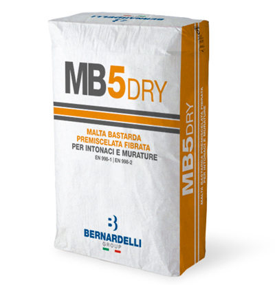 MB5DRY è idonea per l’allettamento di murature portanti e non portanti, per la realizzazione di intonaci sia interni che esterni. MB5DRY è composta da: aggregati silico-calcarei, cemento Portland, calce idraulica, aggiunte minerali, fibre in polipropilene e additivi atti a migliorare le caratteristiche reologiche del prodotto. CONFORMITÀ ✔ UNI EN 998:2016 - Parte 1 – Malta predosata a prestazione garantita per scopi generali (GP) per intonaci interni/esterni ✔ UNI EN 998:2016 - Parte 2 – Malta predosata da muratura a prestazione garantita per scopi generali (G) per l’utilizzo in elementi interni/esterni soggetti a requisiti strutturali. |