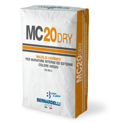 MC20DRY è una malta di cemento premiscelata a secco idonea per la costruzione di murature esterne e interne dove è richiesta una elevata resistenza meccanica, costituite da: mattoni, laterizi, blocchi in calcestruzzo, pietra, ecc. MC20DRY è composta da: cemento Portland, sabbie selezionate e additivi che migliorano le caratteristiche applicative. CONFORMITÀ ✔ UNI EN 998:2016 - Parte 2 – Malta predosata da muratura a prestazione garantita per scopi generali (G) per l’utilizzo in elementi interni/esterni soggetti a requisiti strutturali. |