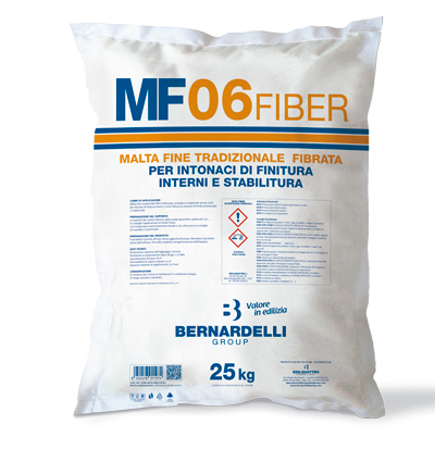 MF06 FIBER è un rivestimento di finitura per interni e viene impiegato come finitura al civile su intonaco di fondo premiscelato o tradizionale. MF06 FIBER è una malta fine - stabilitura fibrata a base di grassello di calce opportunamente stagionato, fibre e sabbie silicee selezionate aventi granulometria da 0 a 0,6 mm. |